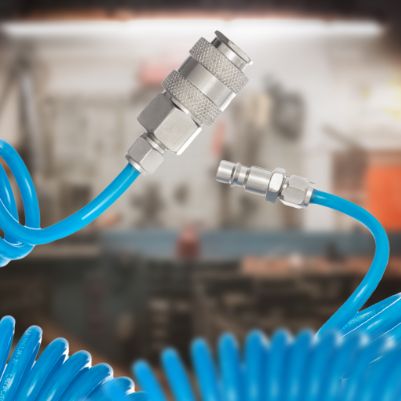 Шланг повітряний із поліуретану використовується для повітряних магістралей пневматичного обладнання. Шланг дуже гнучкий і здатний розтягуватися до 5 метрів, а у згорнутому вигляді займає мінімум місця, не плутається під ногами. Виготовлений із поліуретану, він дуже легкий, стійкий до стирання, зношування, олії та жиру. Стінки шланга витримують робочий тиск до 15 атм. Завдяки спеціальним спіральним обмежувачам, на кінцях шланга, забезпечується цілісність виробу, він захищений від заломів і можливих пошкоджень. Стійкий до низьких температур, не твердне на морозі та залишається таким само гнучкими.